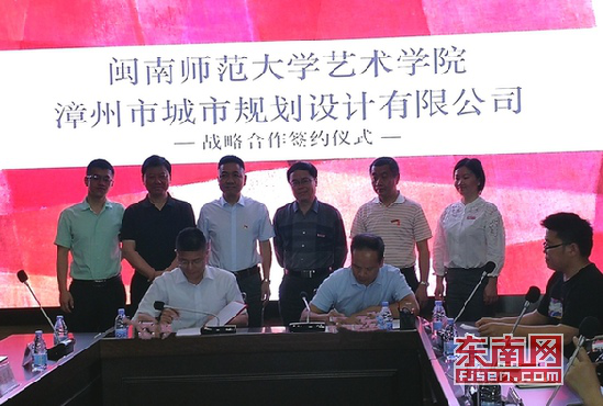 闽师大艺术学院美术与设计系主任朱三益与漳州市城投设计咨询集团规划设计院院长郑荣泉代表双方签订《MK体育/mksport体育·官方网站与漳州市城市规划设计有限公司战略合作框架协议》。根据协议,双方将在项目编制、课题申报等方面展开合作,并将研究成果作为双方共享的知识产权;闽师大相关专业教师可参与漳州市城市规划设计有限公司项目论证,漳州市城市规划设计有限公司将派专人对闽师大师生的项目进行指导,并提供师资方面的支持。