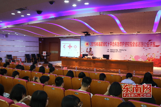 东南网漳州5月29日讯(通讯员 李雨化 康哲力)5月28日晚,由福建省红十字会、福建省卫健委联合组织开展的2019年福建省红十字会应急救护进校园全省巡回公益讲座在闽南师大图书馆五楼报告厅举行。省红十字会事业发展部、闽南师大红十字会、后勤管理处、团委等单位相关负责人以及各学院学生300多人参加讲座。