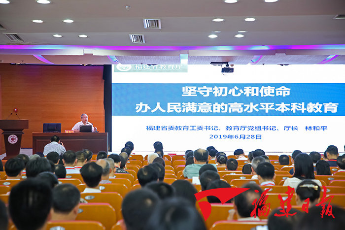 福建省委教育工委书记、教育厅党组书记、厅长林和平作题为《坚守初心和使命 办人民满意的高水平本科教育》的专题报告。林和平指出,加快构建高水平人才培养体系,全面振兴福建本科教育,使命光荣、责任重大。办好人民满意的高水平本科教育,要准确把握新时代高等教育发展的新任务新要求,坚持把高等教育放在更加突出位置;要全面认识新时代我省高等教育面临的发展态势,增强办好高等教育的信心和担当;要科学谋划新时代我省高等教育的发展路径,切实推动高等教育高质量发展。