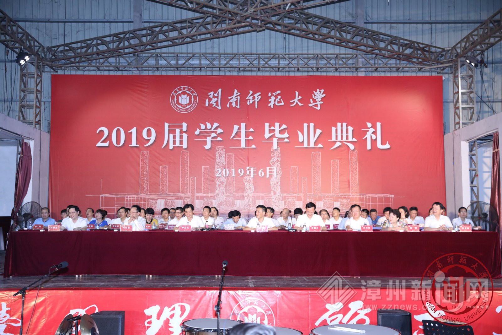 典礼开始前,闽南师大艺术学院师生现场演奏、合唱《凤凰花开的路口》。典礼上,张龙海副校长宣读了博士学位、硕士学位、学士学位的授予决定和优秀毕业生名单。今年,闽南师大共有2名研究生获得博士学位,244名研究生获得硕士学位,4540名本科生获得学士学位;951名学生获得“优秀毕业生”荣誉称号。