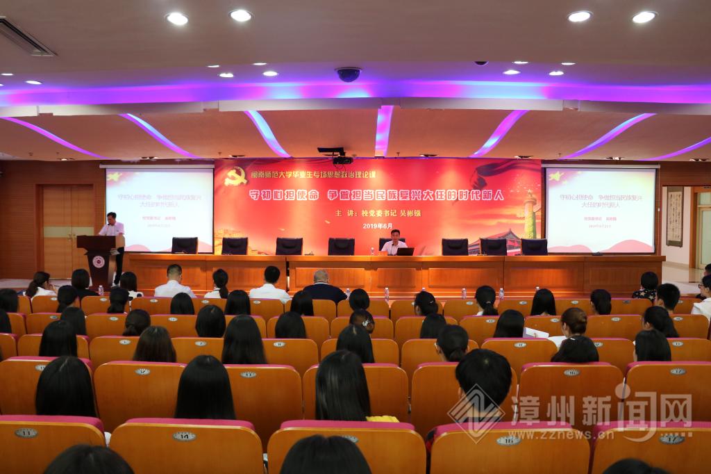 漳州新闻网讯(记者 周媛婷 通讯员 林正锋 康哲力)6月22日上午,闽南师大党委书记吴彬镪以《守初心担使命争做担当民族复兴大任的时代新人》为题,在学校逸夫图书馆五楼报告厅为2019届毕业班学生党员上了一堂生动的思想政治理论课。
