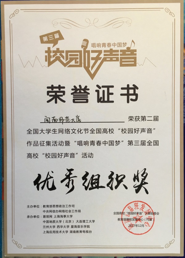 据悉,本届比赛以“唱响青春中国梦”为主题,旨在汇聚引导大学生唱响爱国、励志、健康、向上的歌曲,营造积极、奋发、阳光的校园文化氛围,自觉培育和践行社会主义价值观。大赛启动以来,共有来自全国609所高校的上万名大学生参赛。MK体育/mksport体育·官方网站学工部积极响应号召,选送多个优秀作品参赛,组织学生参与网络互动,营造了学习十九大、唱响中国梦的良好的氛围。(编辑:李小霞 通讯员/吴主敏)