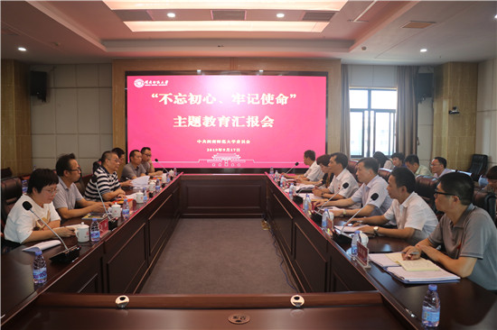 钟发亮在汇报中谈到,按照中央和省委的统一部署,闽南师大“不忘初心、牢记使命”主题教育已正式启动并按照要求扎实有序开展。校党委先行一步,高起点精心谋划,上下联动一体,高标准迅速展开,做到高度重视、精心部署,领导到位、高位推动,率先垂范、全面铺开,截至9月17日上午,全校15个二级学院党委、23个机关党支部均已召开动员部署会议,全部按要求全面启动了主题教育工作。动员部署全面启动后,学校党委着力把主题教育向纵深推进,在营造氛围上抓活、在学习调研上抓紧、在分类指导上抓细、在检视整改上抓实,严要求推动各项工作落实。今后学校将坚持学习与应用同步,在读原著基础上,深悟原理、指导实践,着力解决学习工作两张皮的问题;坚持调研与实践同步,狠抓调研成果转化,举办调研成果交流会,并将调研成果制度化、规范化;坚持检视与整改同步,力争整改解决一批现实问题,对于制度性、基础性问题,建立跟踪问效机制,确保各类问题最终得到解决。