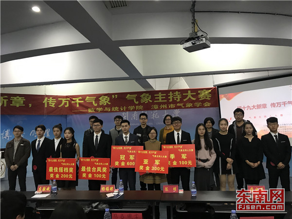 东南网1月3日讯(通讯员 林彤欣)“颂十九大新章,传万千气象。”12月28日下午,由闽南师大数学与统计学院、漳州气象学会主办的气象主持人大赛决赛于达理活动中心三楼会议室如圆满落幕。漳州市气象台副台长杨锡琼女士、气象台工程师庄毅斌先生、气象影视主持人盛飞兵先生受邀担任此次大赛的评委。