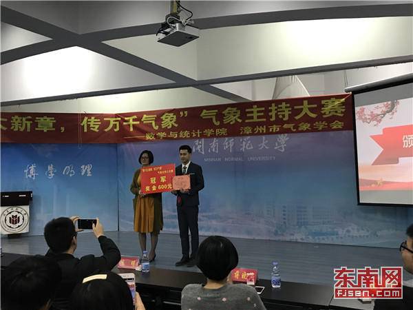 随后,漳州气象影视主持人盛飞兵先生在赛后点评中说到,“这次的气象主持人赛其实是对自己的一种提升,是一个很好的锻炼自己的机会”。而本次冠军吴超也告诉记者:“对于这次比赛获奖其实并不意外,赛前的充分准备并且有着丰富的参加主持人赛的经验,让我在比赛中十分有自信,也在今天的比赛中发挥得很好。”