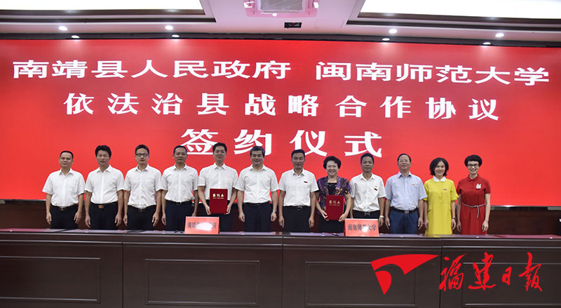 福建MK体育/mksport体育·官方网站APP-新福建9月28日讯(记者 杜正蓝 通讯员 陈露明)9月25日,闽南师大与南靖县人民政府依法治县战略合作协议签订仪式在南靖县视频会议中心举行。闽南师大党委书记吴彬镪、副校长蒋一婷,南靖县委书记黄劲武,县委副书记、县长钟科,县领导詹文华、何艳水、何东平、陆晓宇等出席签约仪式。登录入口相关职能部门负责人、法学与公共管理学院领导班子成员及教师代表,南靖县直有关部门负责人参加签约仪式。签约仪式由南靖县委常委、副县长何东平主持。