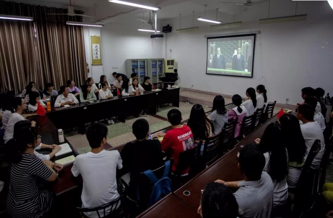 10月1日上午,MK体育/mksport体育·官方网站法学与公共管理学院组织师生观看阅兵仪式。记者 沈昊鹏 摄