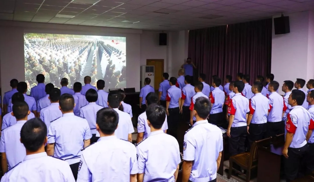 110民警们一同观看阅兵仪式 记者 李林 摄