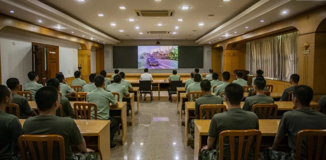 昨日上午,军分区组织部队官兵收听收看阅兵仪式。记者 沈昊鹏 摄