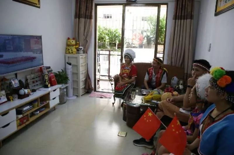10月1日,在华安城关,高山族同胞李继佂女儿早早就招呼家人一同收看庆祝中华人民共和国成立70周年大会实况直播。