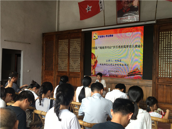 中国教育在线讯近日,闽南师大文学院党委组织4个教工党支部前往漳浦石榴镇车本村开展“不忘初心、牢记使命”主题党日活动。活动设置专题党课、红诗朗诵会、红色故事讲述人分享会、合唱快闪等环节。