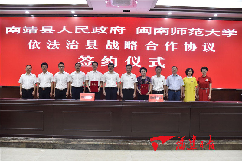 该校与南靖县签订依法治县战略合作协议,在法律咨询、法律培训、普法宣传方面开展深度合作,组织师生到靖城镇、天宝镇开展乡村振兴大讲坛、政策宣讲、普法剧巡演等,为建设大美乡村提供政策咨询服务。乡村振兴战略研究院师生党员前往平和、云霄、南靖等乡间田野开展调查,为乡村规划研制、问题诊断,人才培训、发展咨询等提供智力支持。化学化工与环境学院教工党支部与天宝镇政府开展天宝辖区水体生态修复、环境质量提升项目合作,为当地水体水质改善提供技术服务。