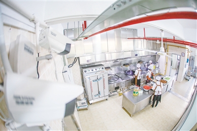 果然,敞开式的厨房让原本神秘的餐馆后堂“阳光”了不少,改造完的食堂,就餐区和后厨只隔着一块玻璃,站在排队打饭的地方,厨房里每一口锅、每一个盆都看得清清楚楚,明亮整洁的厨房让人感到格外放心、舒适。