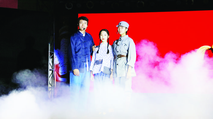 近日,由闽南师大芗涛剧社师生自编自导自演的原创话剧《李林》举行首演。该剧演绎了漳州籍华侨抗日女英雄李林冒死吸引敌人火力,掩护队伍突围,最后壮烈牺牲的感人故事。话剧融合了戏曲、舞蹈、歌曲等多种元素,展现了李林平凡而伟大的英雄形象,赢得现场观众阵阵掌声。郄彩玲 蓝婧宇 摄影报道