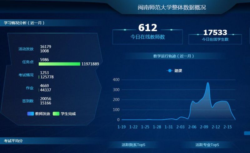2月17日,校历开学第一天,全校共有306门本科课程开展线上教学,当天超星学习通教师进入课程在线教学611人,学生参与学习17390人次。一个多月来,在学校的统筹指导下,全校线上教学总体情况平稳。截止目前,全校已开设线上课程852门(2074门次),参与教师903人,学生学习近12万人次。