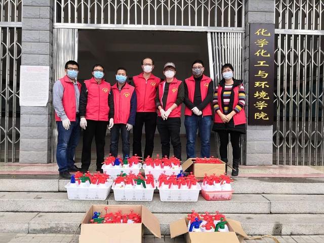 2月15日,在当前消毒酒精紧缺关头,学院成立了党员先锋抗疫志愿服务队。党员先锋队发挥化院人的专业优势,配置了75%酒精等消毒用品分别赠送给鑫荣嘉园、永鸿国际城、高信花园、瑞鑫小区、师院社区、小商品城、悦景豪庭、水仙花园、欣隆盛世等9个小区消毒使用。