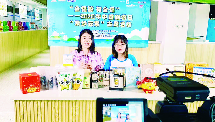 漳州新闻网主播(左)在“2020年中国旅游日‘漫步云霄’主题活动”中直播带货