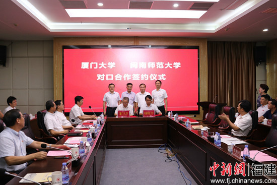 厦门大学党委常委、副校长叶世满,闽南师大党委常委、副校长张龙海分别代表双方签订《厦门大学 MK体育/mksport体育·官方网站对口合作协议书》。