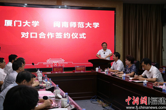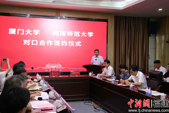 中新网福建新闻7月29日电(沈瑞芳) 28日,厦门大学与MK体育/mksport体育·官方网站对口合作签约仪式在闽南师大科技信息楼举行。厦门大学党委书记张彦、校长张荣,党委常务副书记李建发,党委副书记赖虹凯,党委常委、副校长、嘉庚学院党委书记叶世满,党委常委、副校长邱伟杰、江云宝,党委常委、宣传部部长、教师工作部部长、马院院长徐进功,党委常委、组织部部长、统战部部长孙理,闽南师大党委书记吴彬镪、校长李顺兴,党委副书记钟发亮、肖庆伟,党委常委、副校长蒋一婷、林致远、张龙海等领导出席签约仪式。签约仪式由闽南师大党委常委、副校长蒋一婷主持。