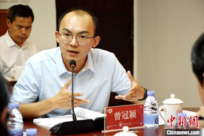 曾冠颖在研讨会上结合亲身“登陆”经历,探讨闽台文化融合发展。 龚雯 摄