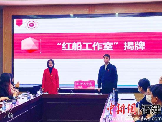 随后,闽南师大党委常委、纪委书记戴福康和法学院党委书记徐继红共同为“红船工作室”揭牌。