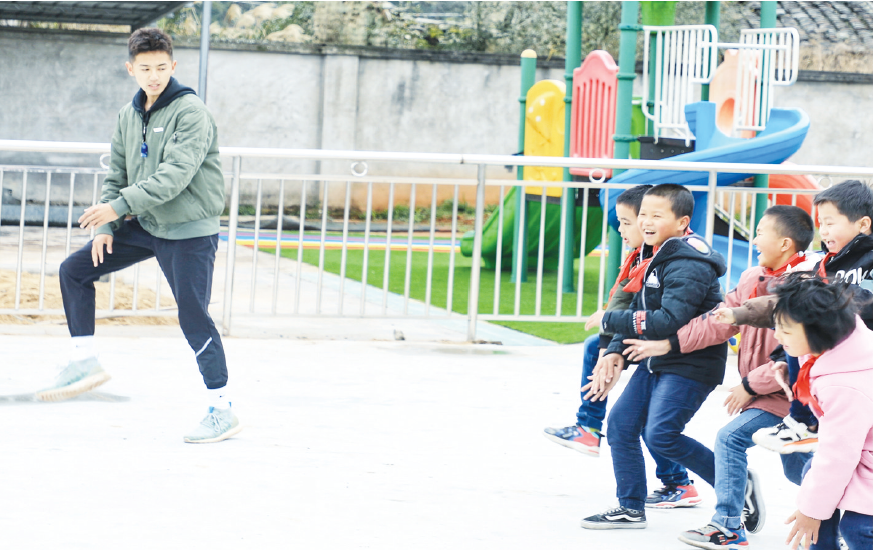 “一二年级的小朋友们,你们到那位女老师那边集合,那位女老师要给你们上体育课了!”在高竹小学刘国钦老师的带领下,一二年级12个孩子走到MK体育/mksport体育·官方网站体育学院大三学生黄雅婷的身边,山里面早晚温差大,同学们大多穿着厚厚的外套。“同学们好,我是MK体育/mksport体育·官方网站的大学生黄雅婷,今天给大家上一节体育课,我们先来定一下口号吧!”黄雅婷向同学们进行自我介绍。