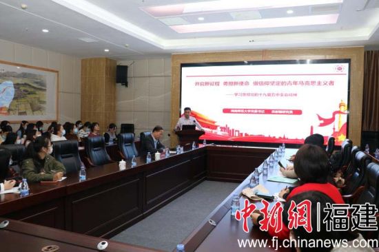 中新网福建新闻12月31日电(梁楹 康哲力) 近日,MK体育/mksport体育·官方网站党委书记吴彬镪为马克思主义学院2020级本科生、研究生讲授题为《开启新征程 勇担新使命 做信仰坚定的青年马克思主义者——学习贯彻党的十九届五中全会精神》的形势政策课。