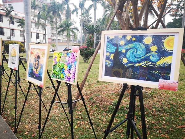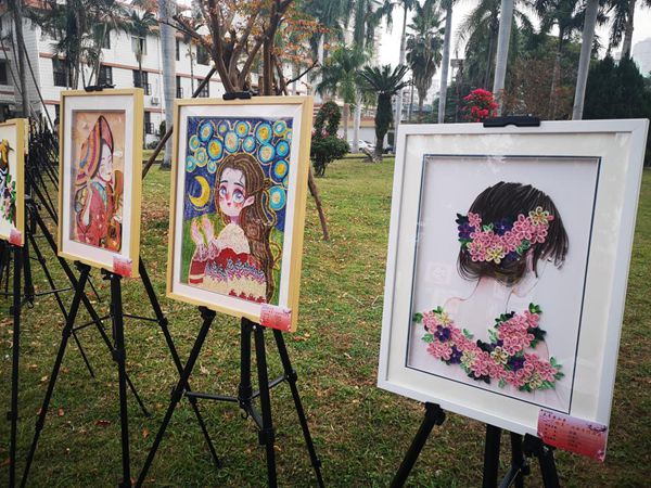 学前教育专业学生粘贴画作品为《幼儿园环境创设》课程实践作品。粘贴画均采用低成本、废旧物材料制作而成,制作工艺综合体现了剪、贴、缝、卷、折等手工技能。作品内容既有活泼可爱的卡通形象,又有雅致精美的人物和风景,匠心独运,巧夺天工,体现了该课程对学生的创意设计能力、手工制作能力及材料利用能力的培养要求。