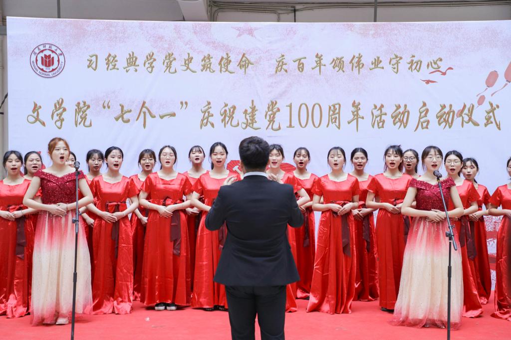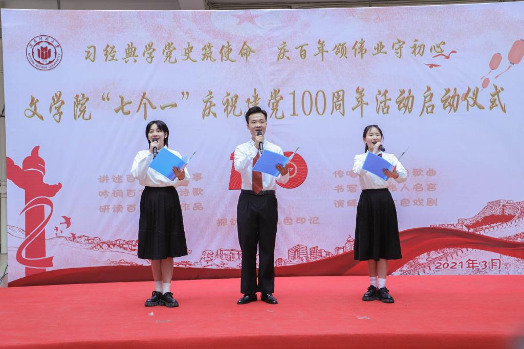 据悉,启动仪式结束后,文学院将持续推出“七个一”庆祝建党100周年系列活动——讲述百个党史故事、吟诵百首红色诗歌、研读百篇红色作品、探访百处红色印记、传唱百支红色歌曲、书写百幅伟人名言和演绎一部红色戏剧。文学院将通过不同的活动形式展开党史学习教育,学习党的百年历史,歌颂党的百年伟业,以积极向上的精神风貌庆祝建党100周年。