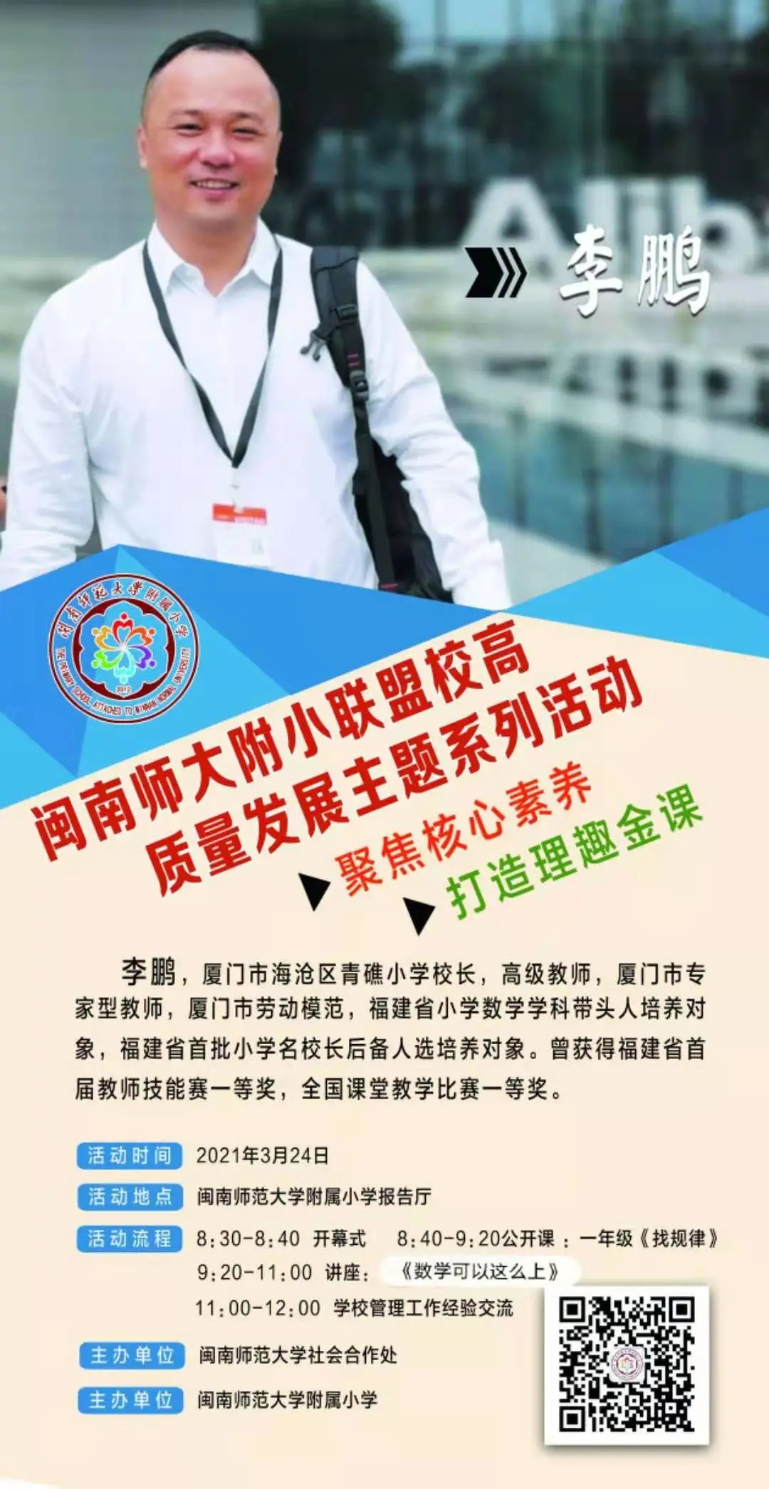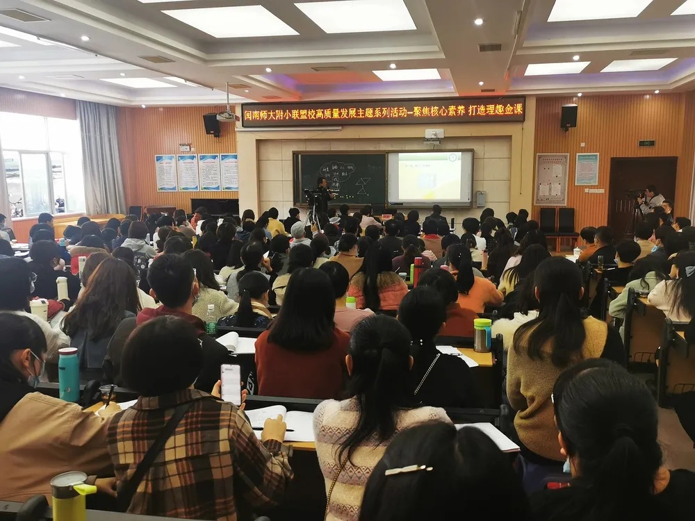 为了寻根溯源,探索建构聚焦核心素养的理趣金课,致力打造高效课堂的“闽师附小模式”,积极助力漳州市中心城区小学数学教师专业发展,2021年3月24日,由MK体育/mksport体育·官方网站社会合作处主办的“聚焦核心素养,打造理趣金课”闽南师大附小联盟校高质量发展主题系列活动(一)在MK体育/mksport体育·官方网站附属小学举行。来自漳州市直、芗城区、龙文区、高新区等中心城区小学很大部分的数学教师齐聚聆听研讨。