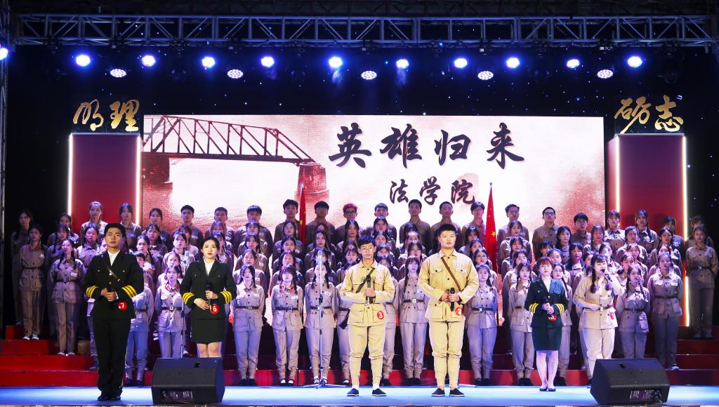 比赛在法学院同学们带来的《英雄归来》中拉开序幕,同学们围绕抗美援朝的故事,将朗诵与演绎相结合,把“此生无悔入华夏,来世还做中国人”的豪情壮志展现得淋漓尽致。文学院带来的《赤起东方万象新》选取牺牲在福建地区的瞿秋白、蔡光中、汤全瑞三位英雄人物的事迹,从自身、妻子、女儿等不同角度讲述他们的故事,彰显了浓厚的地域特色,独具匠心。