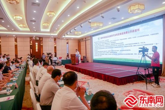 漳州市食安办主任、市市场监管局局长朱东风代表市食安委致辞,总结近年食品安全概况,介绍了食品安全宣传月系列活动安排。随后,大闽食品(漳州)有限公司总经理王军作为企业代表介绍落实主体责任典型经验,来自食品生产、流通、餐饮的100名企业代表进行集体诚信守法和反食品浪费承诺。随后,副市长吴卫红宣布宣传月活动启动。