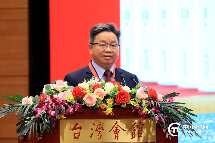中华全国台湾同胞联谊会副会长杨毅周在《台湾通史》(六卷本)全国首发式上致辞。(中国台湾网 符海川 摄)