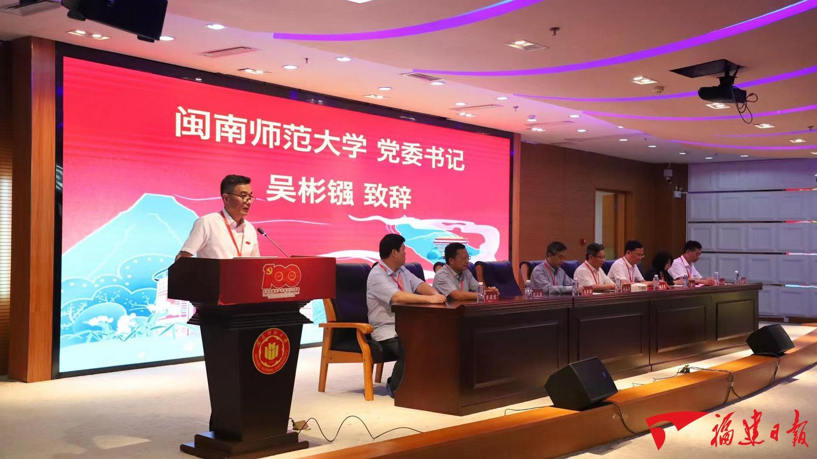 吴彬镪、徐永吉等在开幕式上致辞。徐永吉在致辞中指出,教育部高度重视发挥高等教育在两岸融合发展中的重要作用。近年来,教育部切实将深化两岸融合发展战略落实落细,积极开展多元化对台招生,为台湾学生在大陆就读营造良好环境,积极支持两岸高校合作办学,进一步完善两岸师生往来常态化机制等,取得了良好成效。此次研讨会,来自海峡两岸的教师代表和专家学者齐聚福建漳州,研究深化两岸融合发展的理论与实践,探讨推动两岸高等教育交流合作的思路与举措,具有十分重要的意义。希望与会专家学者深入贯彻落实习近平总书记在庆祝中国共产党成立100周年大会上的讲话精神,深入贯彻落实中央对台工作大政方针,共同为探索两岸融合发展与高等教育交流合作新思路和推进两岸关系和平发展建言献策。