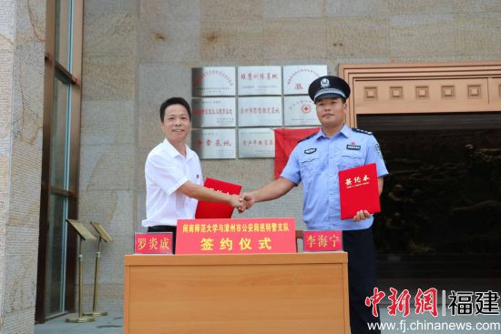 闽南师大党委宣传部部长罗炎成与漳州市公安局巡特警支队队长李海宁队长签署《MK体育/mksport体育·官方网站与漳州市公安局巡特警支队共建思想政治教育基地协议书》