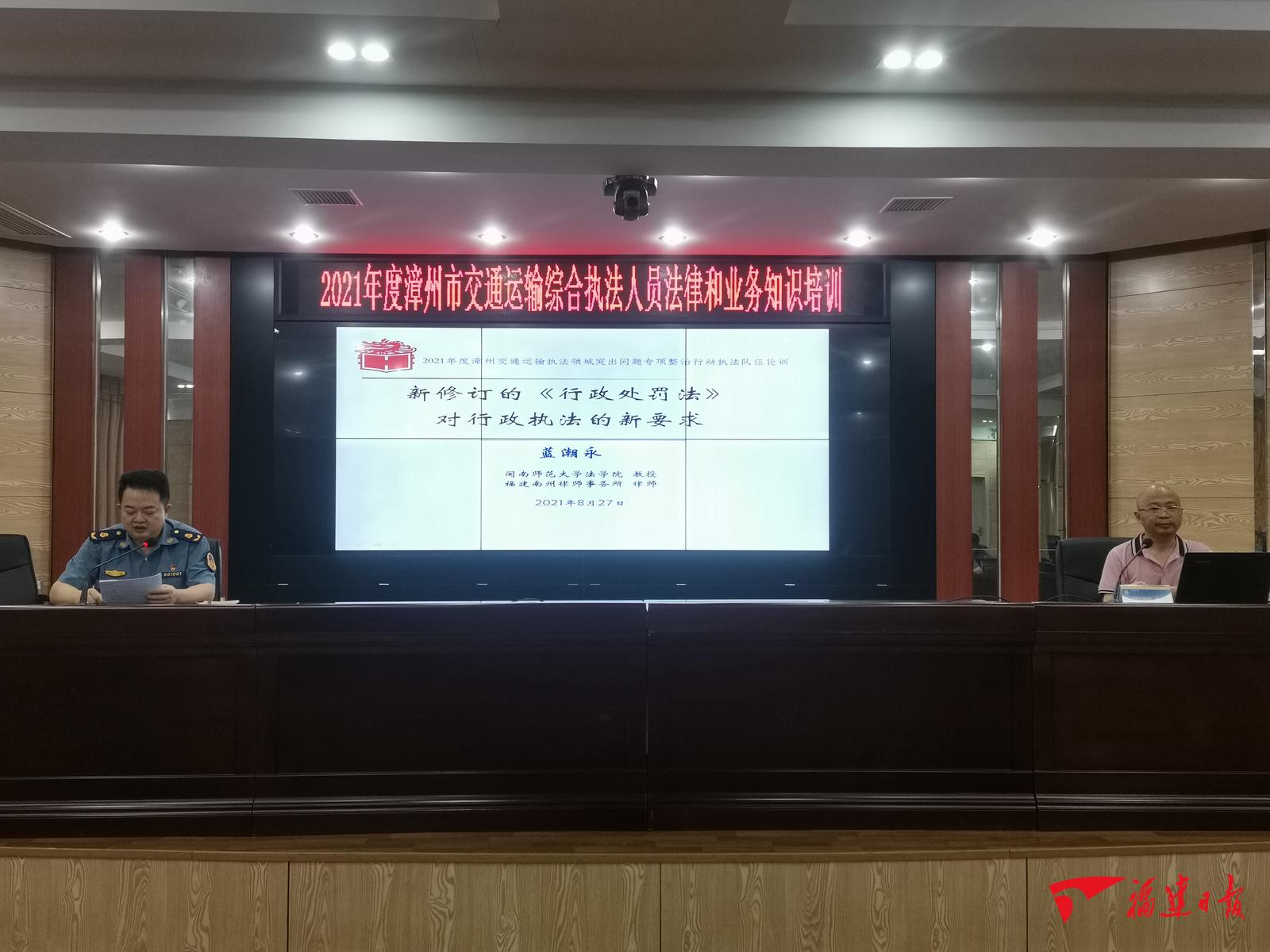 福建MK体育/mksport体育·官方网站·新福建客户端8月30日讯(记者 黄小英 通讯员 郑晓珊)8月27日,漳州交通运输整治办开展交通运输执法系统轮训工作,结合党史学习教育和交通运输执法领域突出问题专项整治行动要求,对全市交通运输执法人员进行法律和业务知识培训。