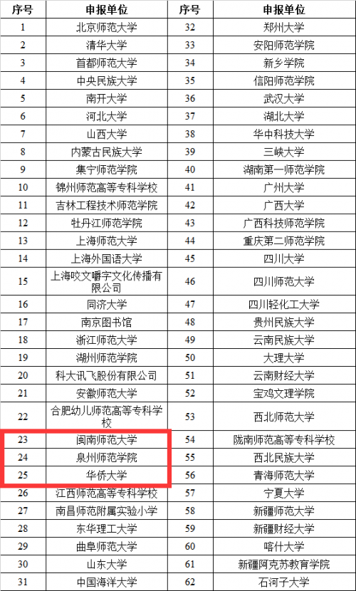 近日,教育部网站发布《关于第二批国家语言文字推广基地拟入选名单的公示》,拟确定北京师范大学等62家单位为第二批国家语言文字推广基地。其中,福建3所高校入选,分别是华侨大学、泉州师范学院和MK体育/mksport体育·官方网站。
