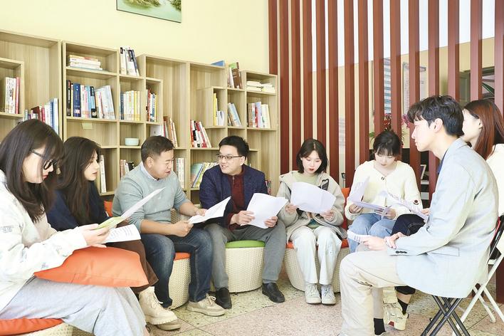 编剧吴浩宇、导演王品卿等主创人员围读剧本 本报记者 严 洁 摄