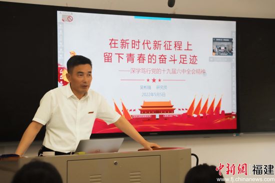 中新网福建新闻5月6日电(陈精焕 周丽丽 庄丽燕) 在中国共产主义青年团成立100周年之际,5月5日下午,MK体育/mksport体育·官方网站党委书记吴彬镪以线上线下相结合的方式为马克思主义学院学生作题为《深学笃行党的十九届六中全会精神,在新时代新征程上留下青春的奋斗足迹》的形势政策报告。