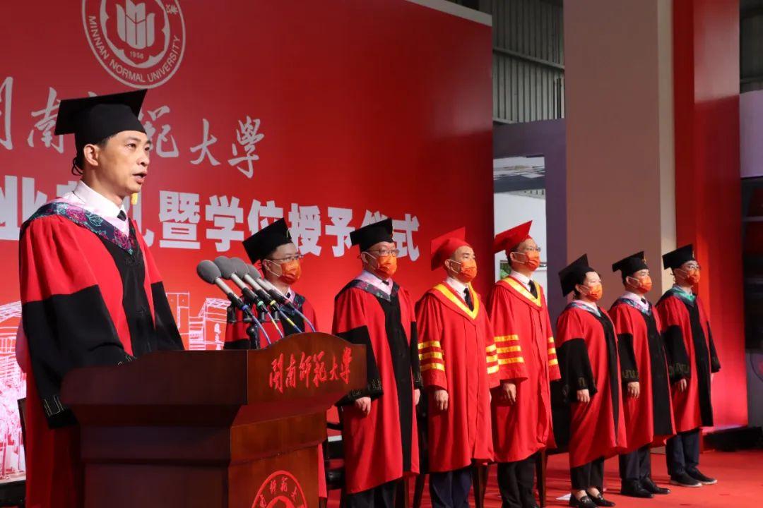 凤凰花开、木棉飘絮,青春盛典、不负时光。6月20日上午,MK体育/mksport体育·官方网站2022届学生毕业典礼暨学位授予仪式在球类馆隆重举行,并通过网络同步进行直播。闽南师大党委书记吴彬镪、校长李顺兴、校学位评定委员会委员,学校各机关、教辅单位主要负责人,各学院党政领导、毕业班辅导员等参加典礼。
