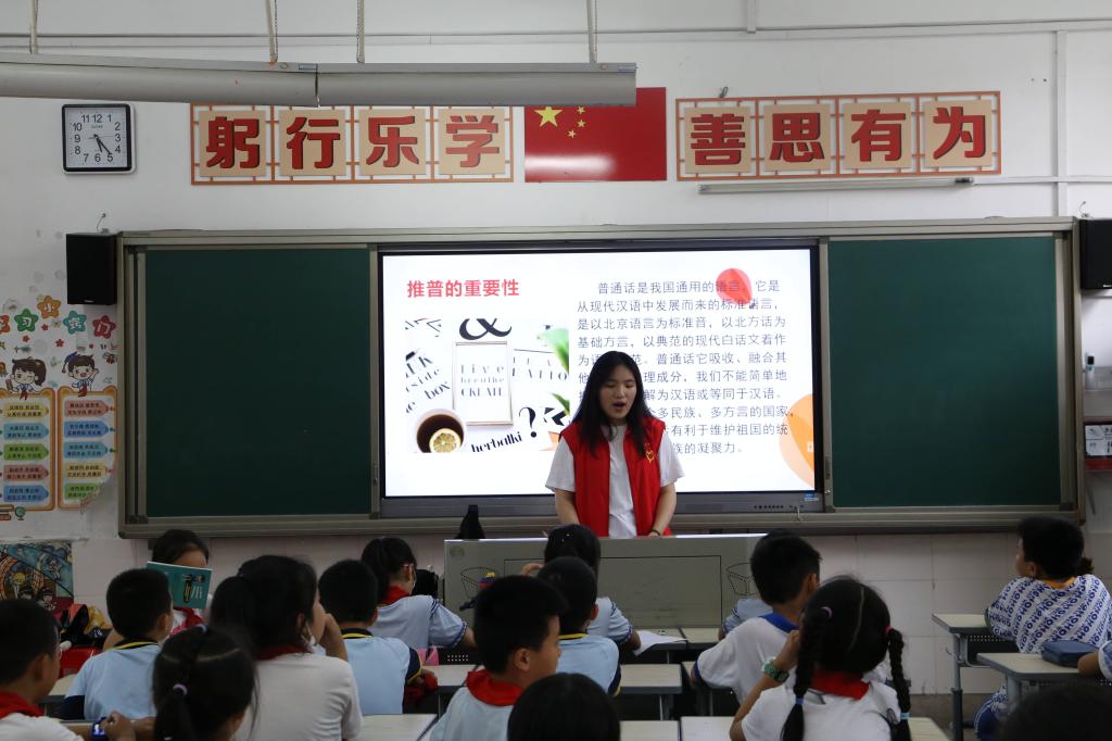 大学生志愿者到闽南师大附属小学开展推普授课活动,通过普通话朗诵教学、绕口令与成语接龙游戏等培养小学生说普通话的意识与能力。MK体育/mksport体育·官方网站文学院的教师则为孩子们推荐了适合他们阅读的图书,如《中国童话》《西游记》《鲁滨逊漂流记》《十万个为什么》等,引导小朋友们带着好奇心去探索和发现世界,在阅读中快乐成长。