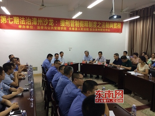 东南网漳州6月23日讯(通讯员 郑容坤 本网记者 王亚男)6月20日,由闽南师大法学与公共管理学院、长泰县人民法院、法治漳州研究中心共同举办的第七期法治漳州沙龙在登录入口博文楼举行。本期沙龙主题为“缓刑管制假释制度之法制与实务”,邀请了中华司法研究会常务理事、台湾“中央”警察大学法律系主任余振华做主题报告。漳州市中级人民法院副院长王文平、长泰县法院院长姚毅奇、漳州市中院涉台庭庭长林立、漳州市检察院监所检察处副处长陈伟凯、福州大学何群博士等出席了论坛并依次作解读发言。沙龙由MK体育/mksport体育·官方网站法学与公共管理学院院长、法治漳州研究中心主任何东平主持。