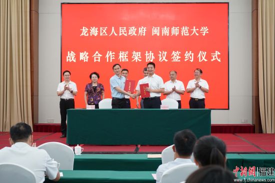 闽南师大党委书记吴彬镪,党委副书记、校长李顺兴,党委常委、副校长蒋一婷,党委常委、副校长林致远,中共龙海区委书记黄劲武,区委副书记、区长陈艺章,区领导张文彬、林文生出席签约仪式。签约仪式由龙海区区委常委、组织部长林文生主持。