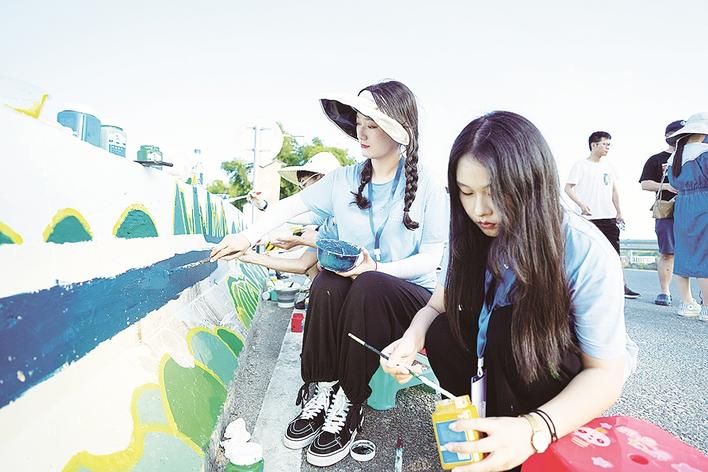 据介绍,这条长廊的矮墙原本是路边的围挡,已陈旧不堪,但出于安全考虑不能拆除。此次通过大学生的墙绘创作,这道矮墙俨然成为村口一道亮丽的风景线。
