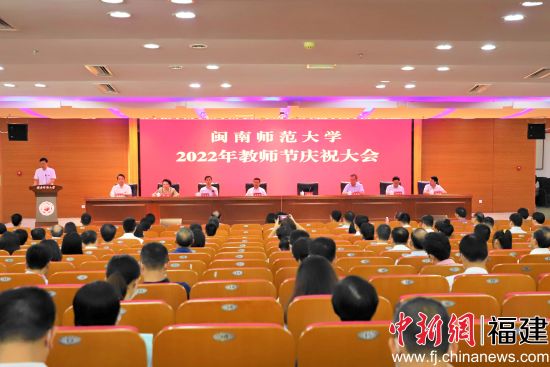 中新网福建新闻9月10日电(沈瑞芳 刘媛媛 周丽丽) 9月9日下午,闽南师大在逸夫图书馆五楼报告厅隆重举行2022年教师节庆祝大会。全体在家校领导,全校中层干部,一年来新入职教职工、退休教职工、学生代表,以及接受本次大会表彰的代表参加会议。会议由闽南师大党委副书记、校长李顺兴主持。
