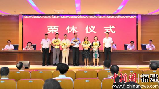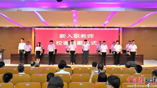 随后,举行新教师入职仪式和退休教职工荣休仪式。全体校领导为新入职教师代表佩戴校徽,新入职教师在大会上进行庄严的入职宣誓。闽南师大党委书记吴彬镪、校长李顺兴分别为退休教职工代表敬献鲜花。