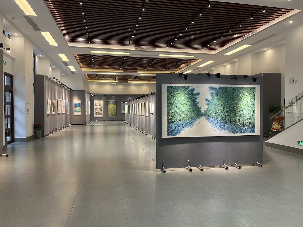 本次展览共展出作品120余件,作品重点围绕富美漳州、印象闽南、新农村建设、漳州风土人情等题材,既有描绘漳州美景的《春至瑞竹岩》《闽南水乡》《涯上人家》,也有表现漳州特色的《水仙花》系列、《土楼印象》《香蕉海》等。一幅幅作品呈现了新时代新农村建设、漳州繁荣富美的新气象。作品采用当代水墨创作手法,独立思考,力求建构新的绘画语言,将现代艺术主动介入绘画中,保持艺术个性,探索不同艺术形态,探寻艺术多元化发展。艺术语言表达具有传统文化内涵中的人文自然意象的综合审美特质,区别于西方文化艺术以逻辑为主要思维特色的审美形式,强调个性化表达,融合时代发展因素,展现闽南风土人情及城乡发展的恢弘图景,反映出了中国当代水墨画家踔厉奋发的精神面貌。同时,以艺为媒,进一步加强了漳州艺术家与国内艺术家的促进、交流。(陈木坤)