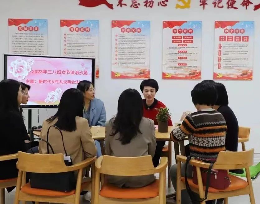 座谈会上,女老师和女律师们就两会中有关子女教育、医疗、扶贫等热点问题展开了激烈的讨论。其中,作为龙文区人大代表的简晓冬律师还介绍了新时代基层治理的“枫桥经验”、保障女性权益的《妇女权益保障法》等相关内容。与会人员纷纷从理论和实践角度发表了自己的看法与见解。
