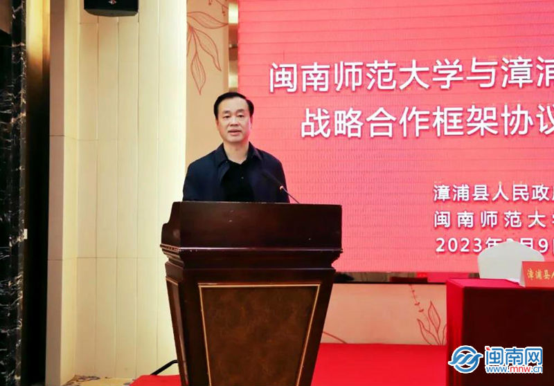 在仪式上,吴丁顺表示,此次的校地合作将更好地推进闽师大与漳浦县协同发展,为加快“活力新产城、生态富家园”建设提供更加坚实的人才和智力支撑。衷心希望以此次签约仪式为新起点,依托闽师大在人才、经济、管理等方面的独特优势,积极探索产学研对接、校企合作、技术研发、技术培训等合作模式,为漳浦高质量发展注入源源不绝的创新活力。漳浦县委、县政府将一如既往地支持教育科技创新,充分发挥地方党委政府强大的行政推动和社会组织力量,竭诚搭建优质平台,提供便利条件,加强与校方友好交流,共同构建充满活力、富有效率、优势互补的合作机制,让大家在金漳浦这片热土上建功立业、大展宏图。
