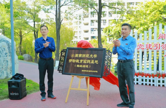 校党委书记吴彬镪、校长李顺兴共同为揽城绿道劳动教育实践基地揭牌